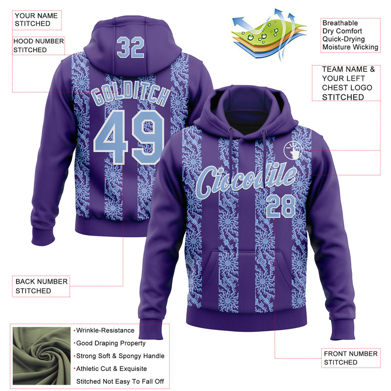 Custom Stitched Purple Light Blue-White Abstract Shape Pattern Sports Pullover Sweatshirt Hoodie