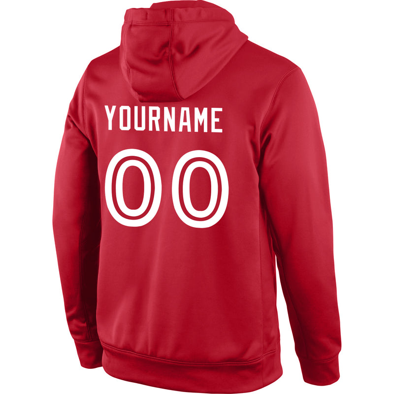 Custom Stitched Red White Sports Pullover Sweatshirt Hoodie