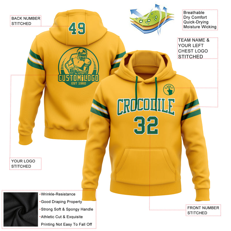 Custom Stitched Gold Kelly Green-White Football Pullover Sweatshirt Hoodie