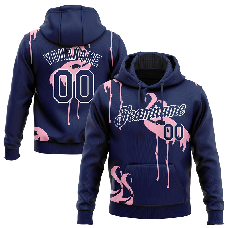 Custom Stitched Navy-White 3D Pattern Design Flamingo Sports Pullover Sweatshirt Hoodie