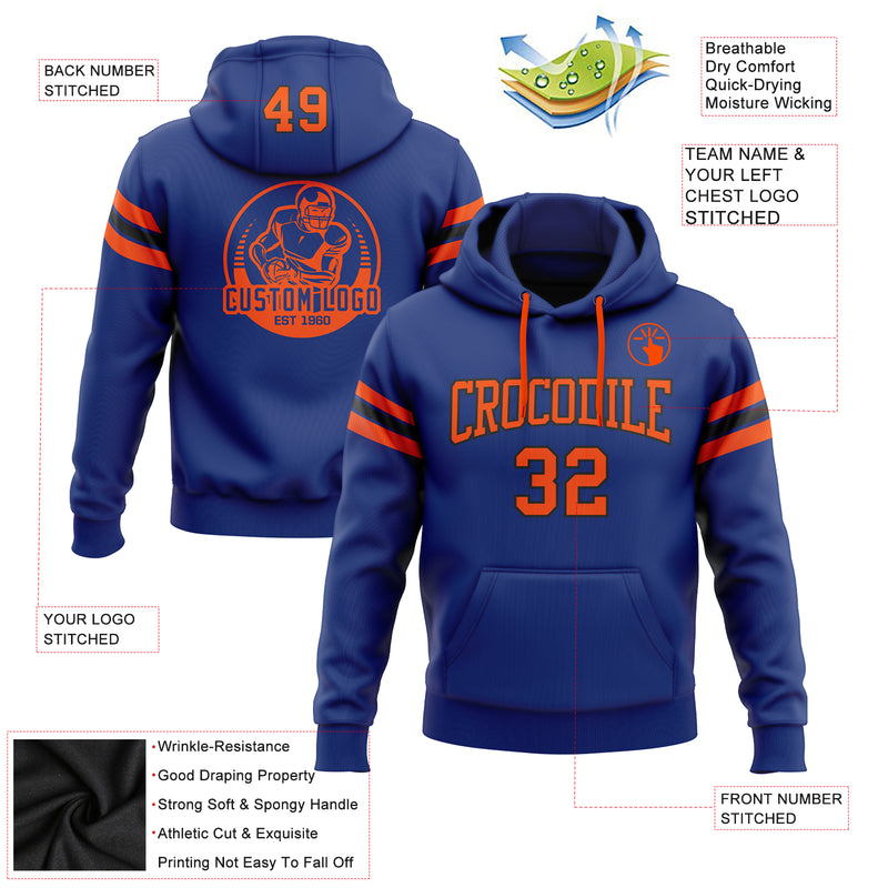 Custom Stitched Royal Orange-Black Football Pullover Sweatshirt Hoodie