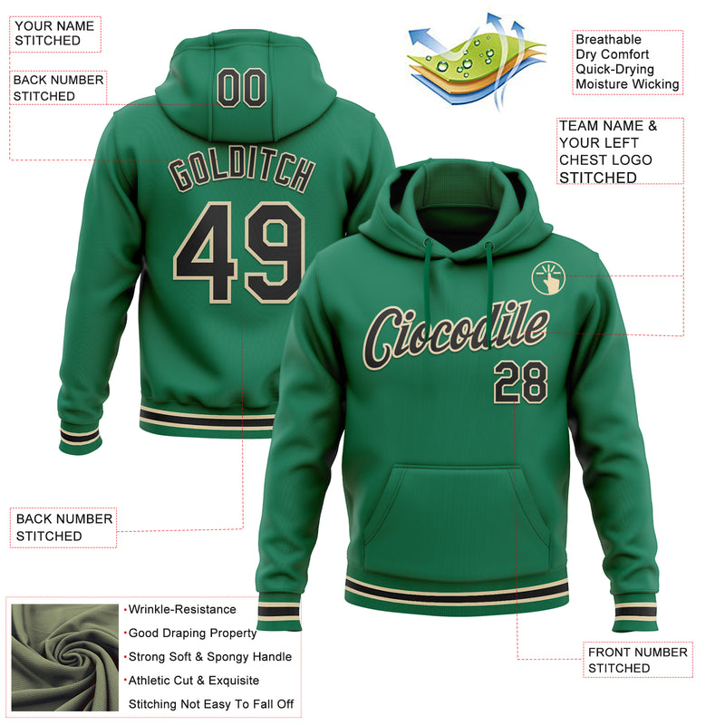 Custom Stitched Kelly Green Black-Cream Sports Pullover Sweatshirt Hoodie