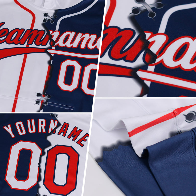 Custom Lakes Blue Navy-White 3D Christmas Hockey Lace Neck Jersey