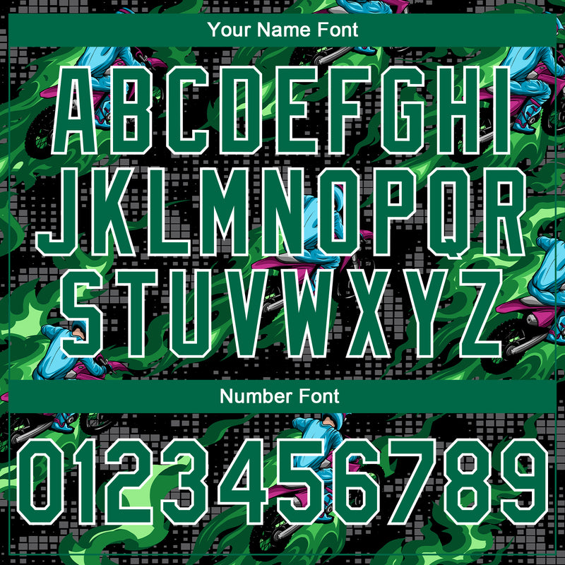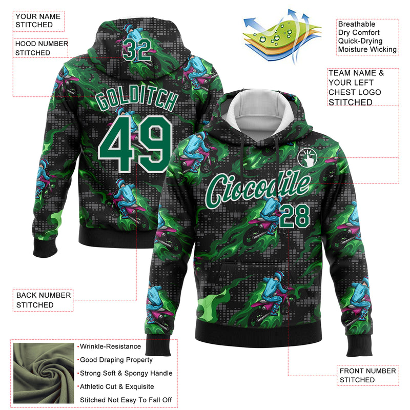 Custom Stitched Black Kelly Green-White 3D Pattern Design Flame Motorcycle Motocross Racing Sports Pullover Sweatshirt Hoodie