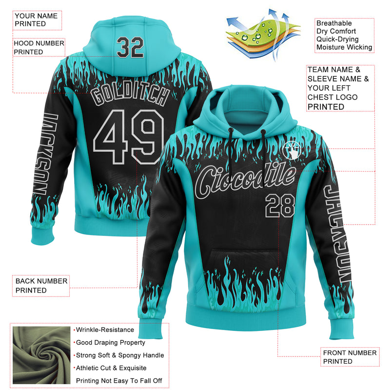 Custom Blue Black-White 3D Abstract Flame Sports Pullover Sweatshirt Hoodie