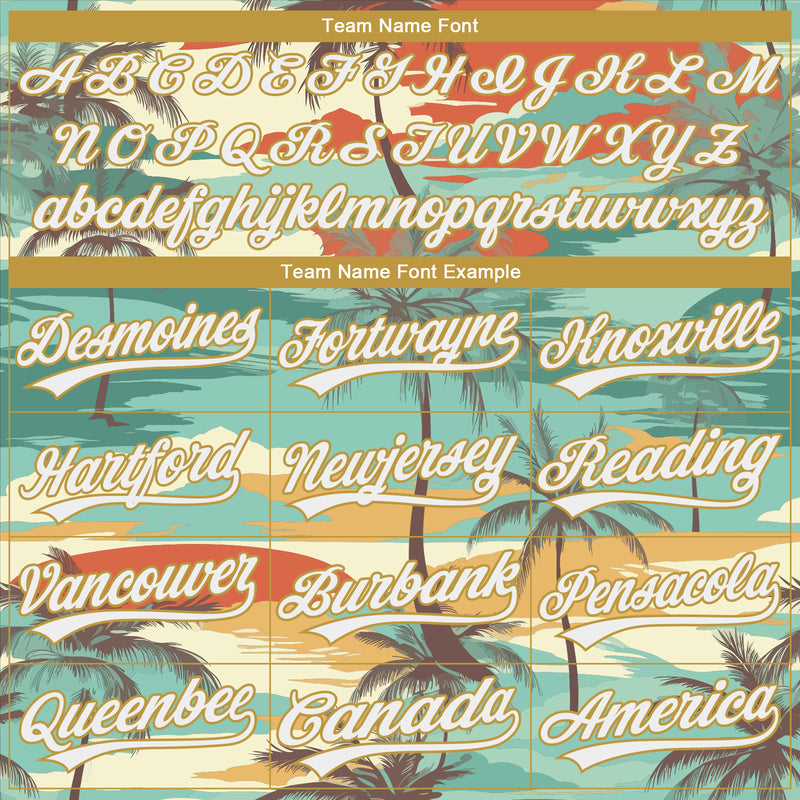 Custom Stitched Green White Brown-Old Gold Cartoon Hawaii Palm Trees Sports Pullover Sweatshirt Hoodie