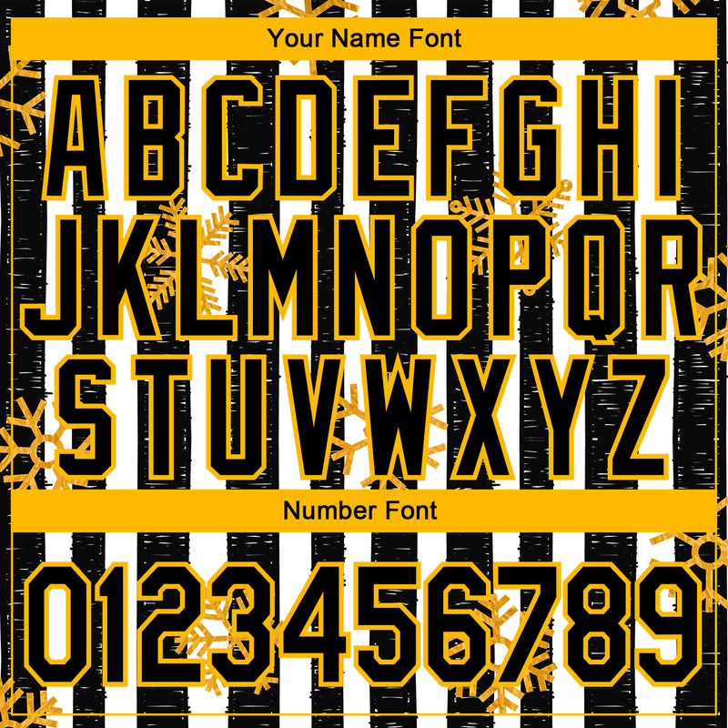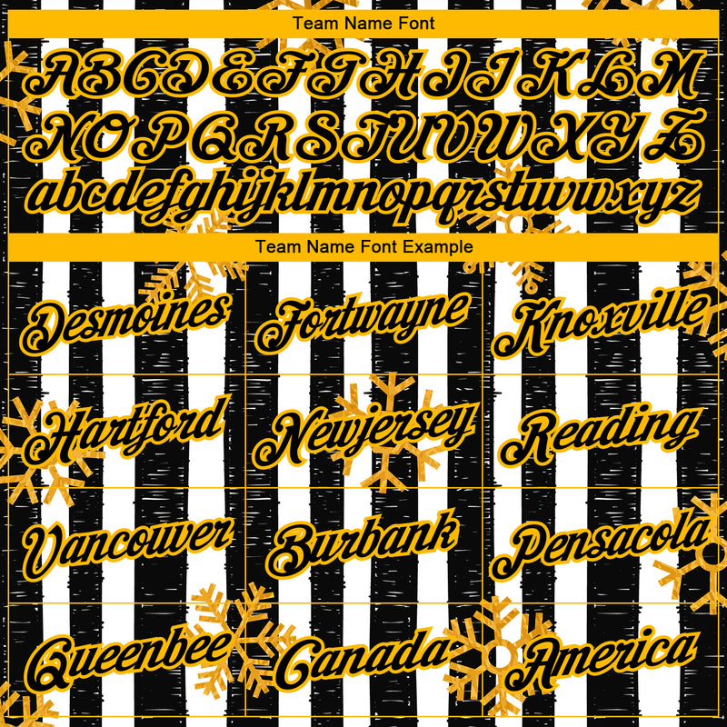Custom Old Gold Black-White 3D Christmas Hockey Lace Neck Jersey