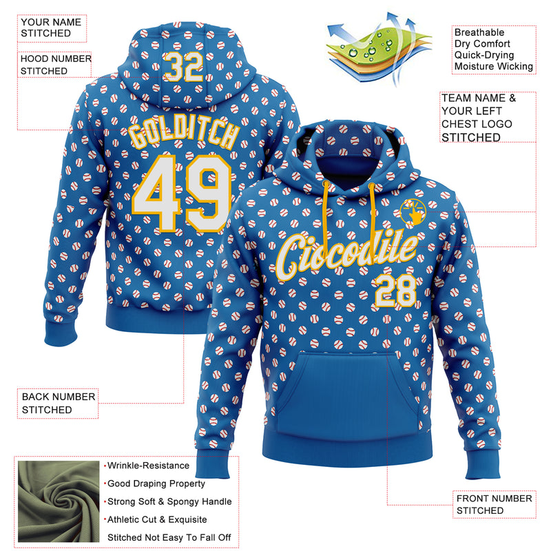 Custom Stitched Blue White-Gold Baseball Game Day Los Angeles Inspired Sports Pullover Sweatshirt Hoodie