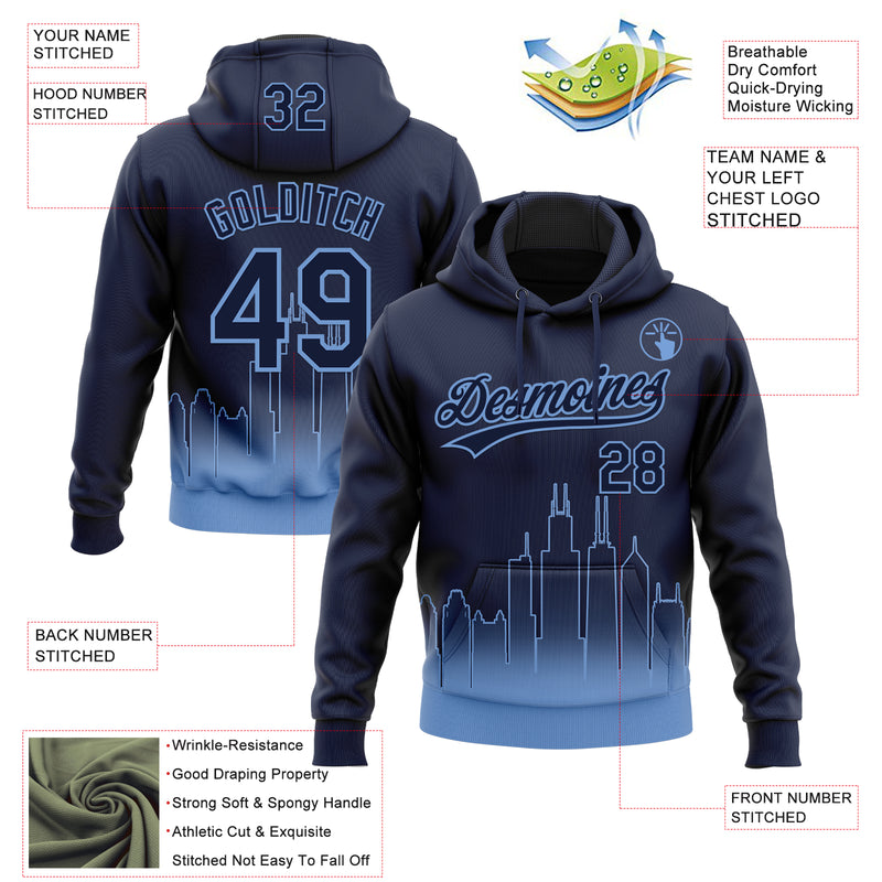 Custom Stitched Navy Light Blue Gradient Fashion Chicago City Edition Sports Pullover Sweatshirt Hoodie