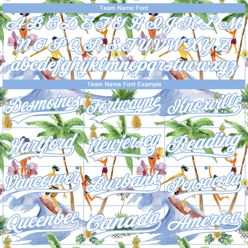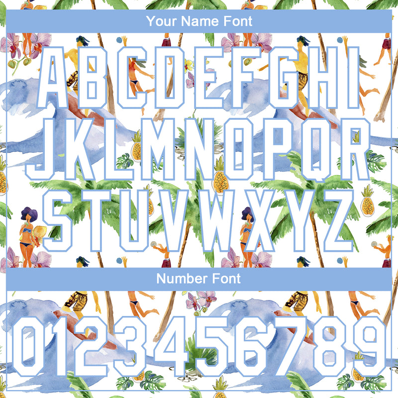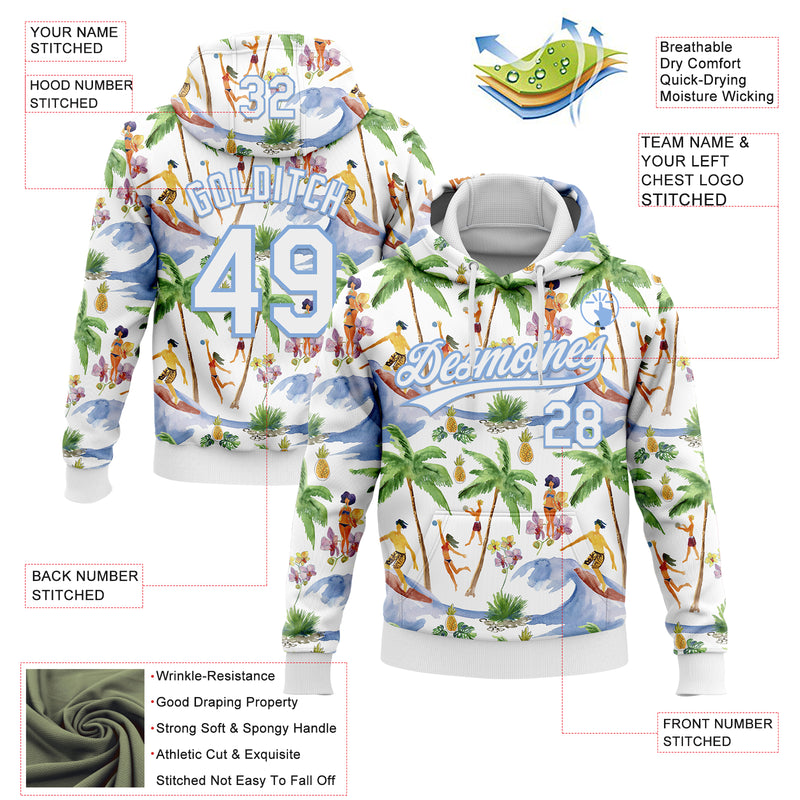 Custom Stitched White Light Blue Hawaii Palm Trees Sports Pullover Sweatshirt Hoodie