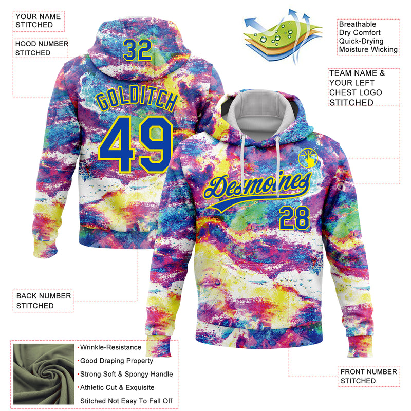 Custom Stitched Graffiti Pattern Thunder Blue-Light Yellow Abstract Splatter Sports Pullover Sweatshirt Hoodie