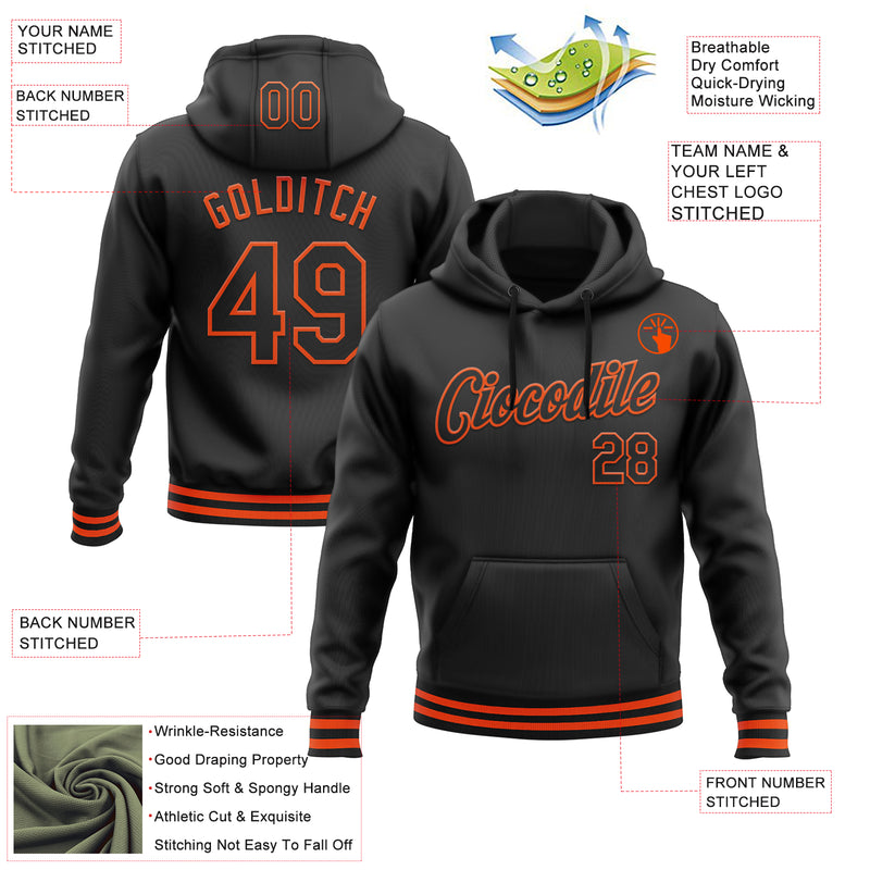 Custom Stitched Black Orange Sports Pullover Sweatshirt Hoodie