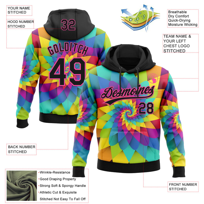 Custom Stitched Rainbow Black-Pink Abstract Sports Pullover Sweatshirt Hoodie