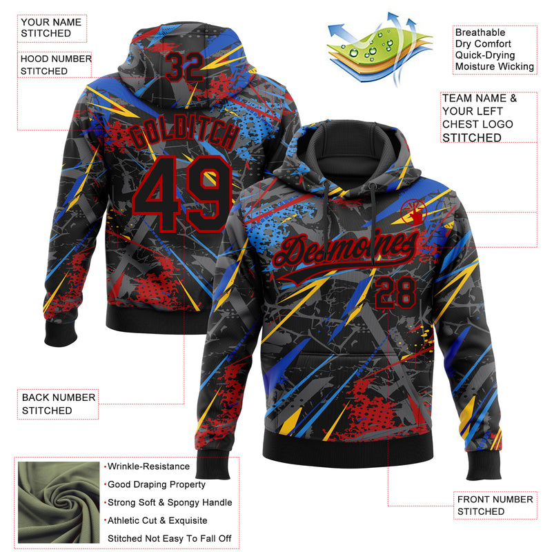 Custom Stitched Graffiti Pattern Black-Red Abstract Splatter Sports Pullover Sweatshirt Hoodie