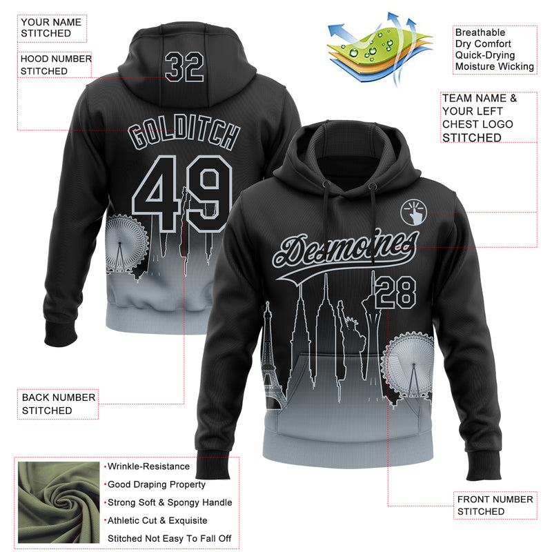 Custom Stitched Black Silver Gradient Fashion Las Vegas City Edition Sports Pullover Sweatshirt Hoodie