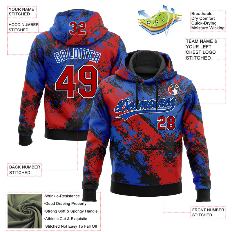 Custom Stitched Black Red Thunder Blue-White Abstract Splatter Sports Pullover Sweatshirt Hoodie