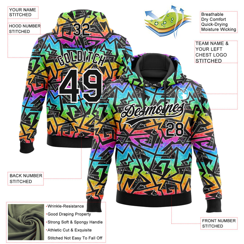 Custom Stitched Graffiti Pattern Black-White Abstract Geometric Sports Pullover Sweatshirt Hoodie
