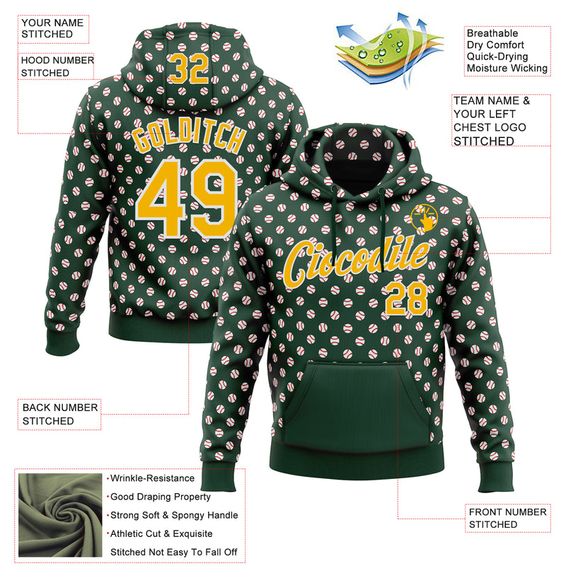 Custom Stitched Green Gold-White Baseball Game Day Green Bay Inspired Sports Pullover Sweatshirt Hoodie