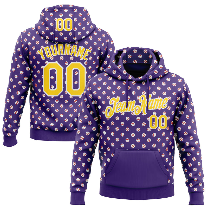 Custom Stitched Purple Yellow-White Baseball Game Day Minnesota Inspired Sports Pullover Sweatshirt Hoodie
