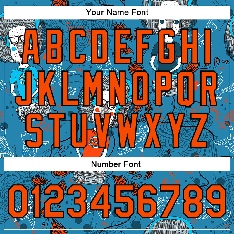 Custom Powder Blue Orange-Black Casual Music Festival 3D Pattern Design Bomber Full-Snap Varsity Letterman Jacket