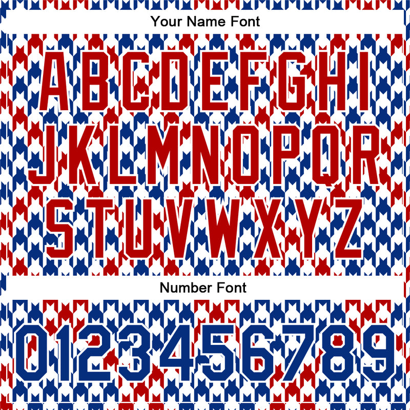 Custom White Royal-Red Check Board 3D Pattern Design Bomber Full-Snap Varsity Letterman Jacket