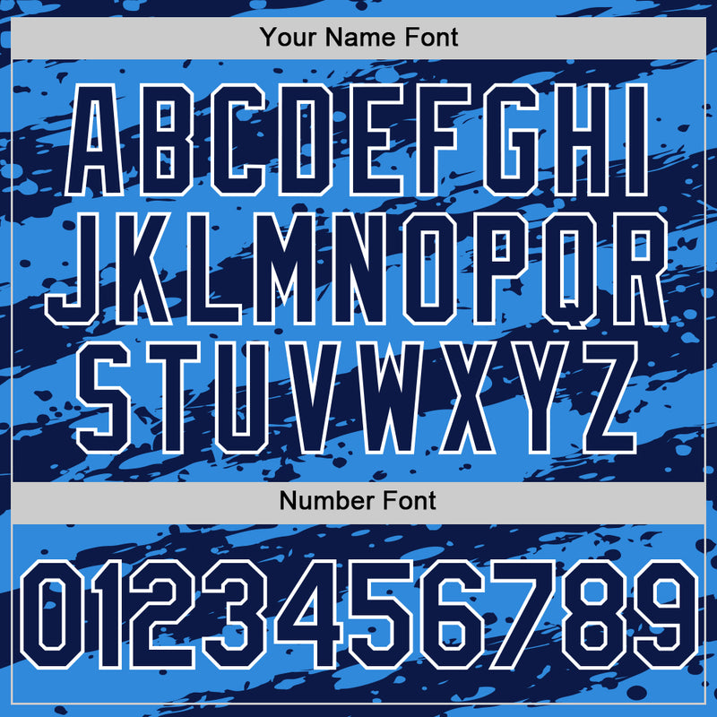 Custom Powder Blue Navy-White Splash 3D Pattern Design Bomber Full-Snap Varsity Letterman Hoodie Jacket