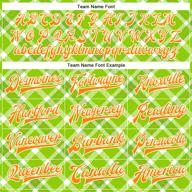 Custom Neon Green Bay Orange-White Check Board 3D Pattern Design Bomber Full-Snap Varsity Letterman Jacket