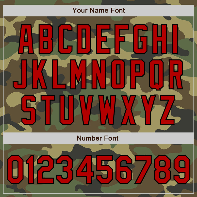Custom Camo Red-Black Bomber Full-Snap Varsity Letterman Salute To Service Jacket