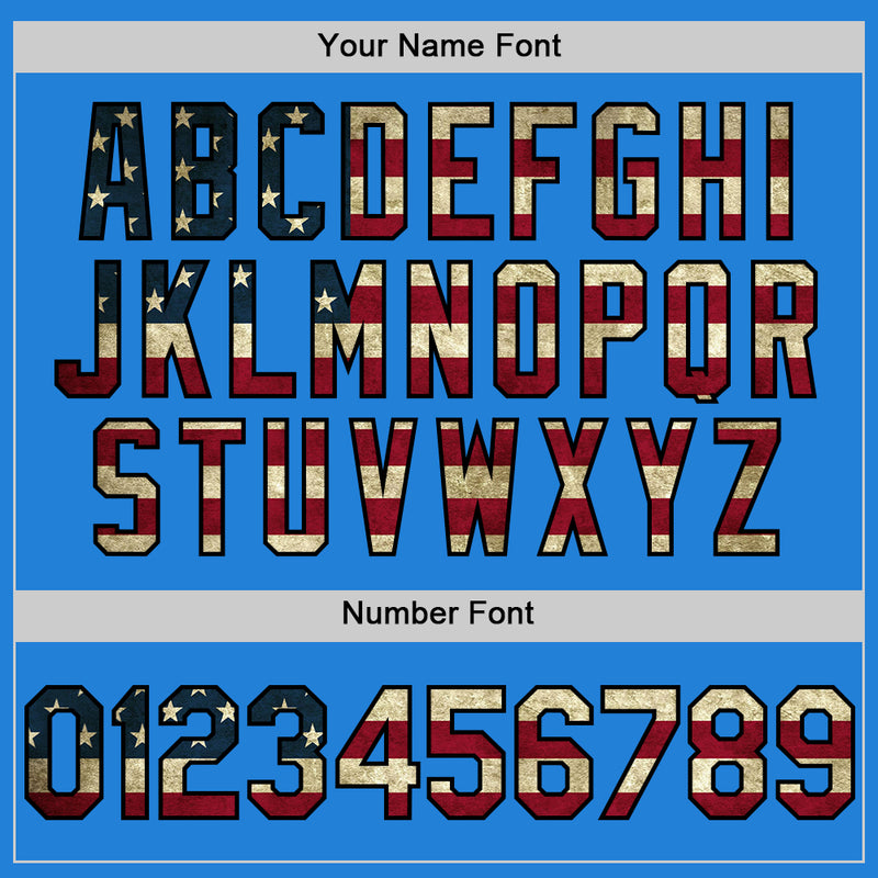 Custom Powder Blue Vintage USA Flag Black-Cream Bomber Full-Snap Varsity Letterman Hoodie Jacket
