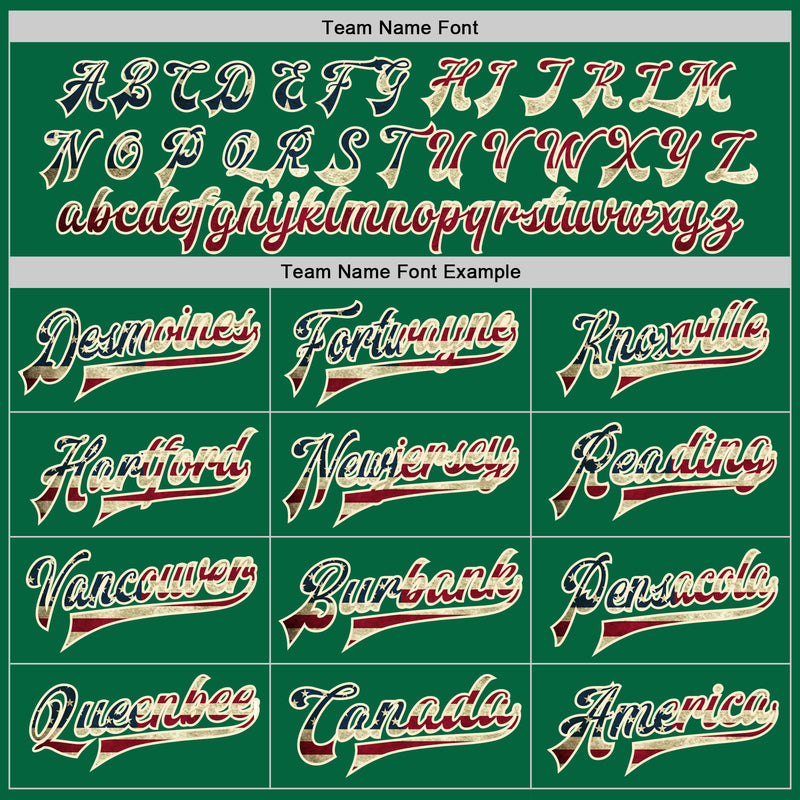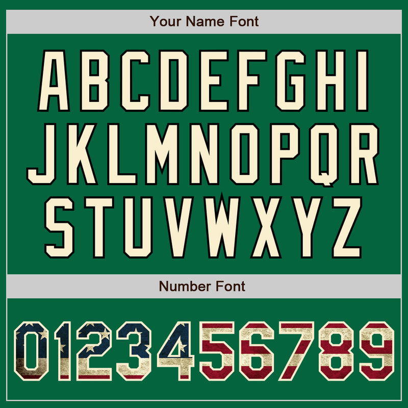 Custom Kelly Green Vintage USA Flag City Cream-Black Bomber Full-Snap Varsity Letterman Jacket