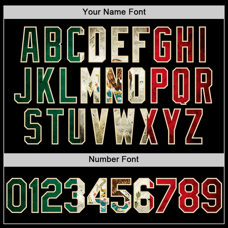 Custom Black Vintage Mexican Flag Cream-Kelly Green Bomber Full-Snap Varsity Letterman Lapel Collar Byron Jacket