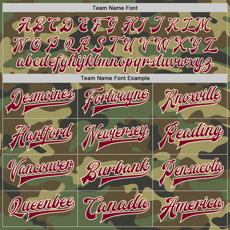 Custom Camo Maroon-Cream Bomber Full-Snap Varsity Letterman Salute To Service Jacket