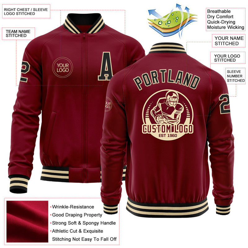 Whether you're a student athlete, a sports enthusiast, or simply looking to add a touch of nostalgia to your wardrobe, our built letterman jacket is the perfect choice. It's not just apparel; it's a symbol of your achievements and sense of belonging. Stand out from the crowd with your personalized uniform featuring stitched numbers.