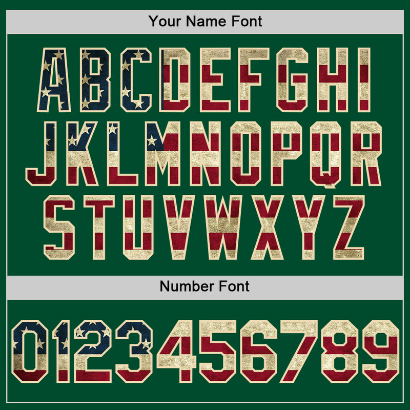 Custom Kelly Green Vintage USA Flag Cream-Black Bomber Full-Snap Varsity Letterman Hoodie Jacket