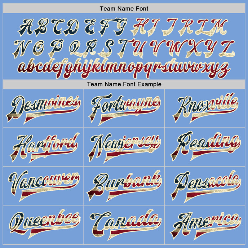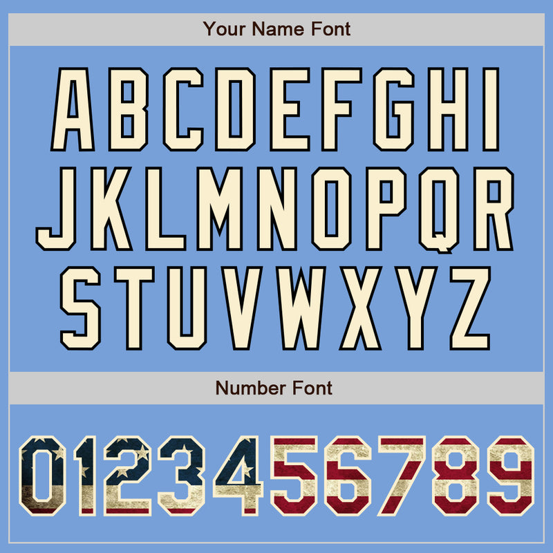 Custom Light Blue Vintage USA Flag Cream-Black Bomber Full-Snap Varsity Letterman Jacket