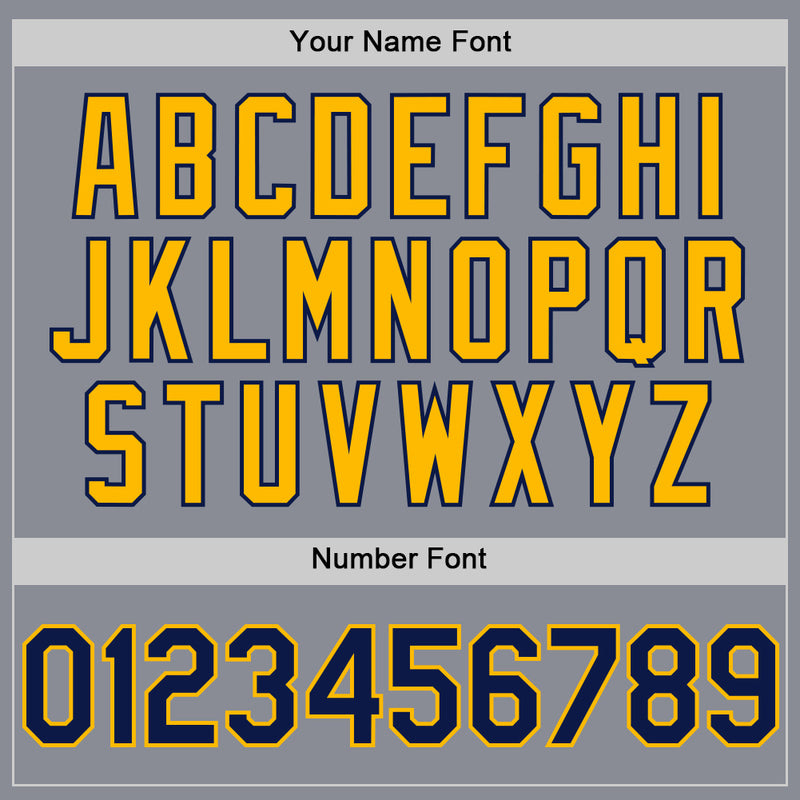 Custom Gray Navy-Gold Bomber Full-Snap Varsity Letterman Two Tone Hoodie Jacket