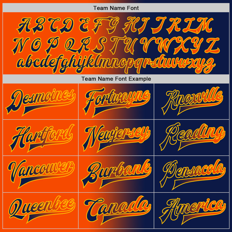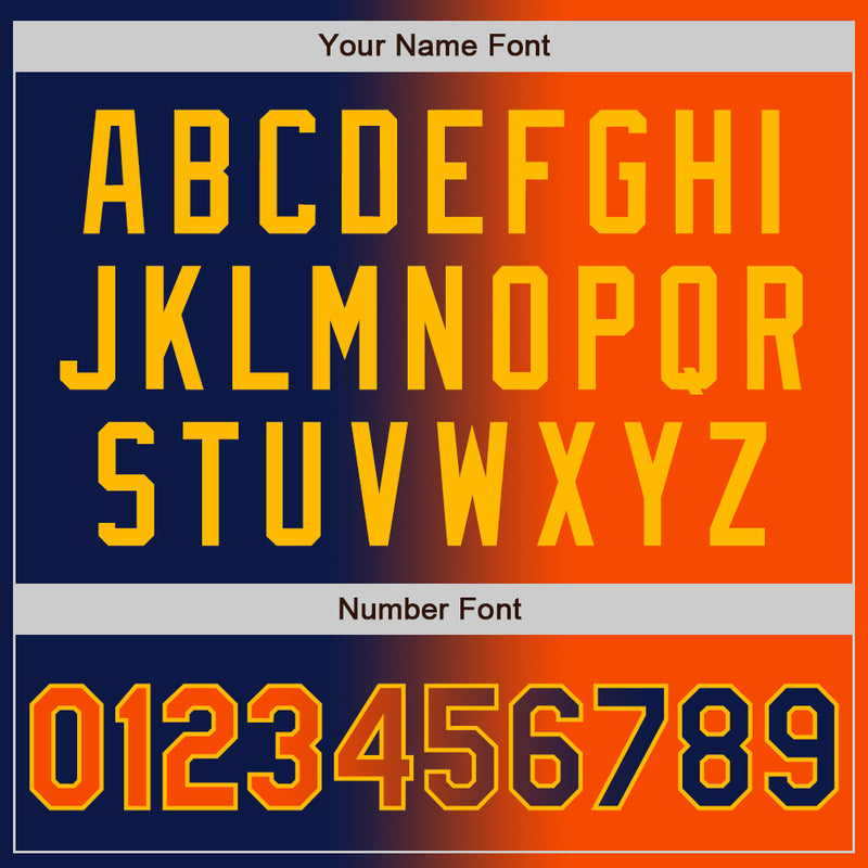 Custom Navy Orange-Gold Bomber Full-Snap Varsity Letterman Gradient Fashion Jacket
