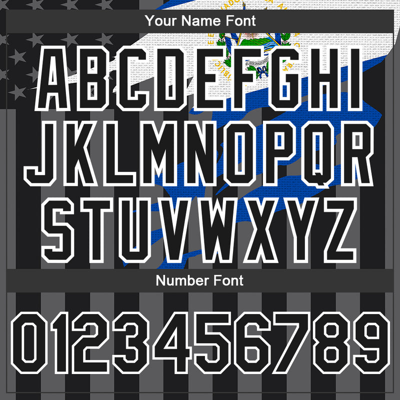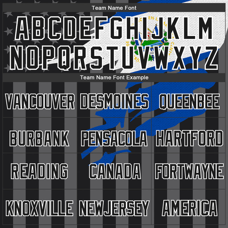Custom Black Gray-White El Salvador El Salvadoran Flag 3D Bomber Full-Snap Varsity Letterman Hoodie Jacket