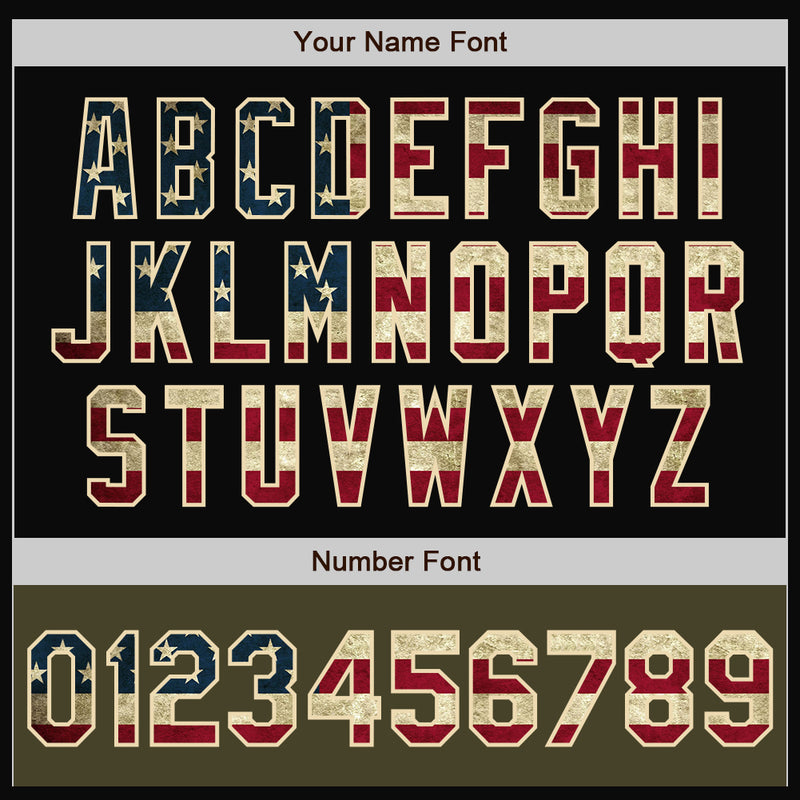 Custom Black Vintage USA Flag Olive-Cream Bomber Varsity Letterman Two Tone Zipper Jacket