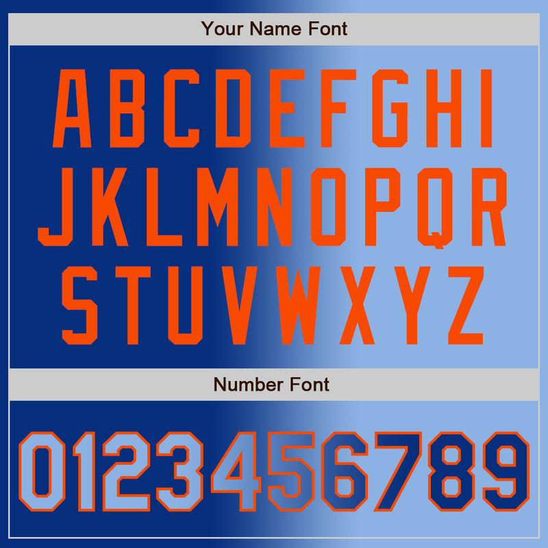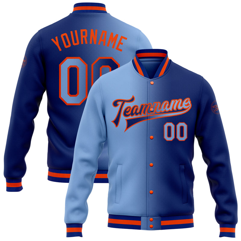 Custom Royal Light Blue-Orange Bomber Full-Snap Varsity Letterman Gradient Fashion Jacket