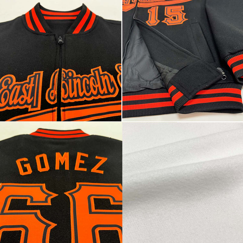Custom Black Black-White Bomber Full-Snap Varsity Letterman Jacket