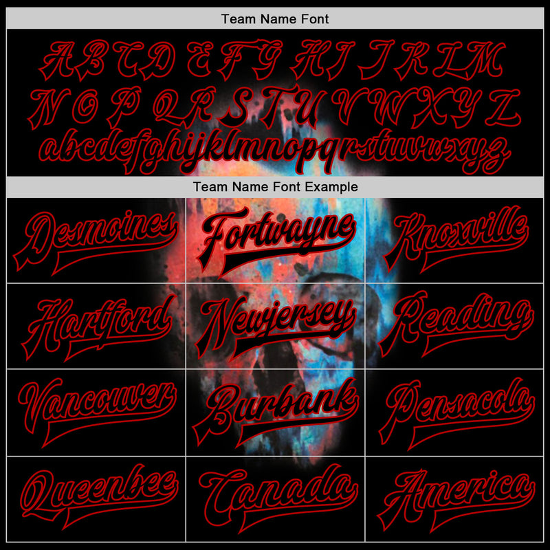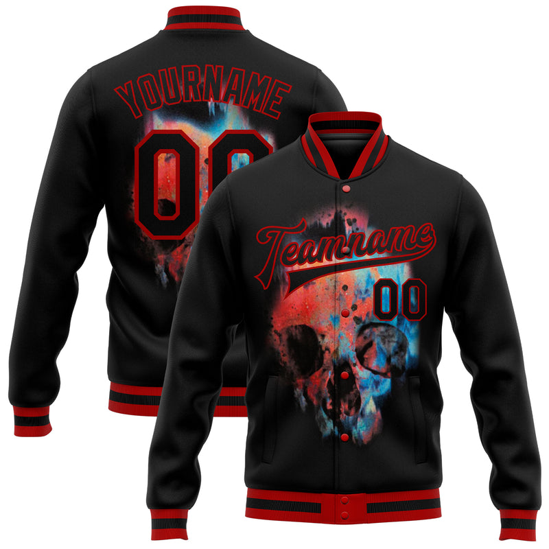 Custom Black Red Skull Fashion 3D Bomber Full-Snap Varsity Letterman Jacket
