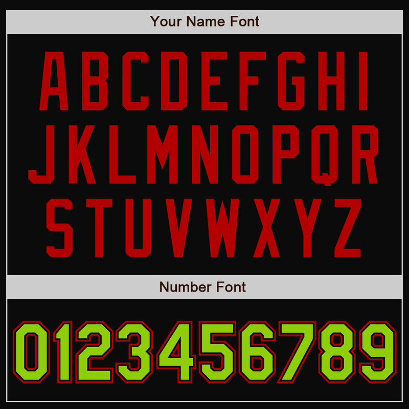 Custom Black Neon Green-Red Bomber Full-Snap Varsity Letterman Two Tone Jacket