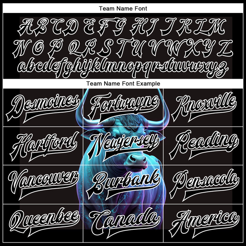 Custom Black White A Blue Bull With Blue Horns 3D Pattern Design Bomber Full-Snap Varsity Letterman Jacket