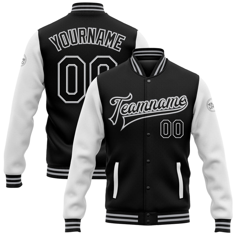 Custom Black White-Gray Bomber Full-Snap Varsity Letterman Two Tone Jacket