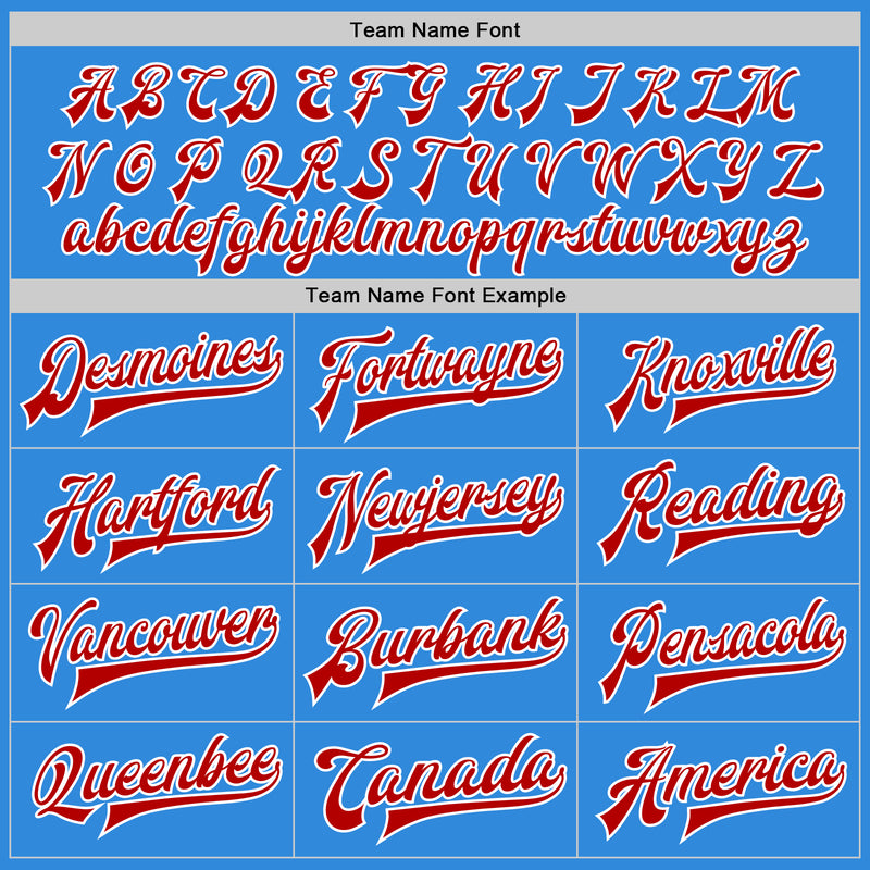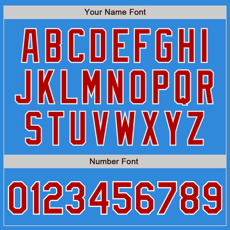 Custom Powder Blue Red-White Bomber Full-Snap Varsity Letterman Jacket