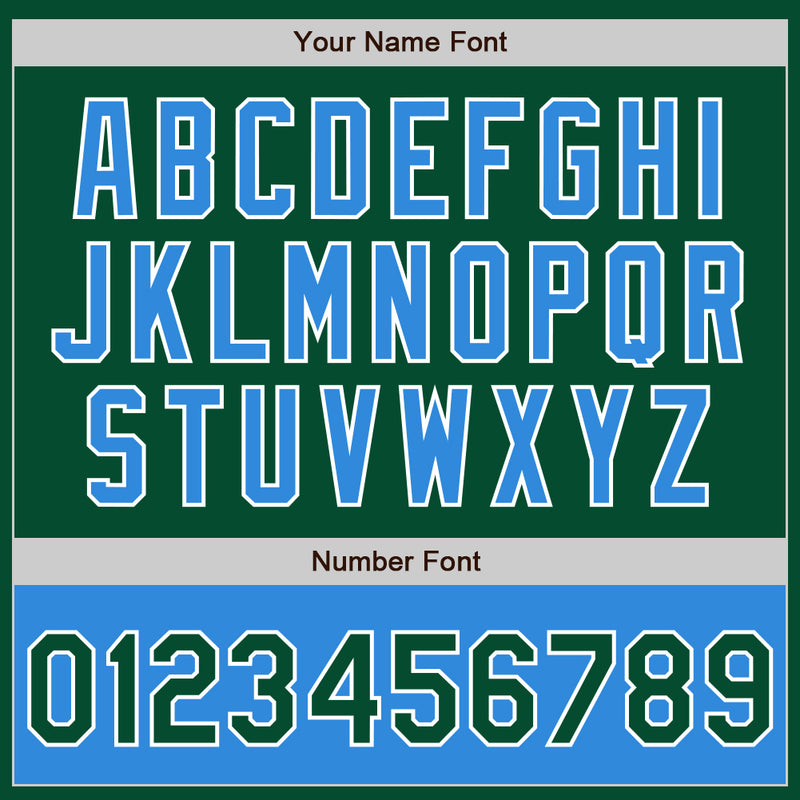 Custom Kelly Green Powder Blue-White Bomber Varsity Letterman Two Tone Zipper Jacket