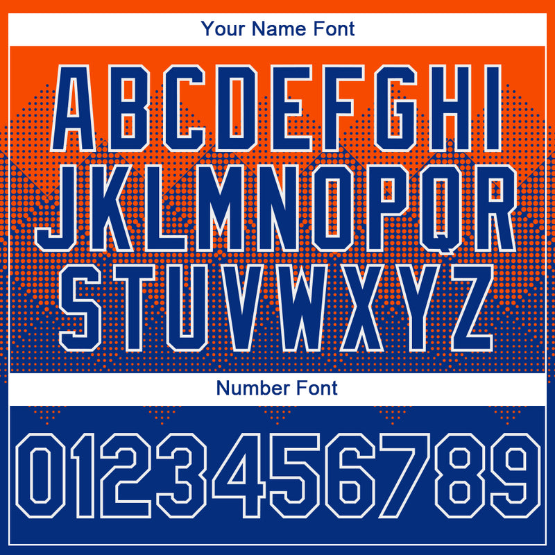 Custom Orange Royal-White Gradient Square Shape 3D Pattern Design Bomber Full-Snap Varsity Letterman Hoodie Jacket