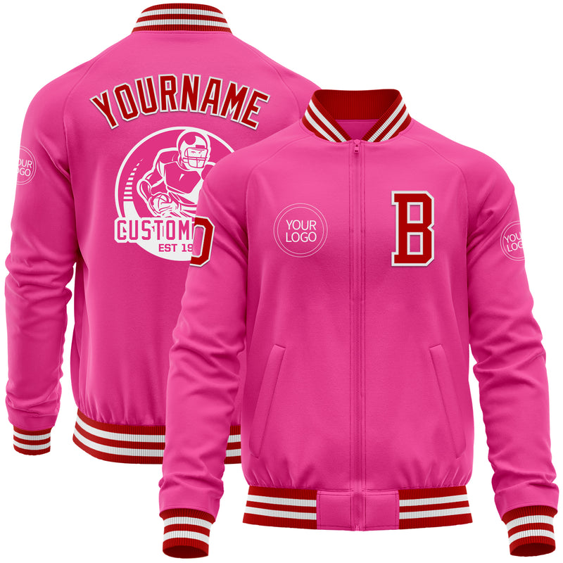 Custom Pink Red-White Bomber Varsity Letterman Zipper Jacket