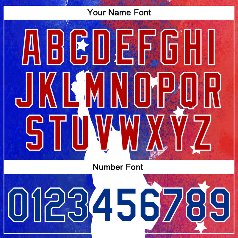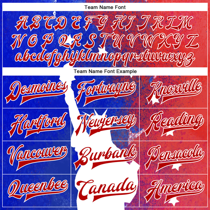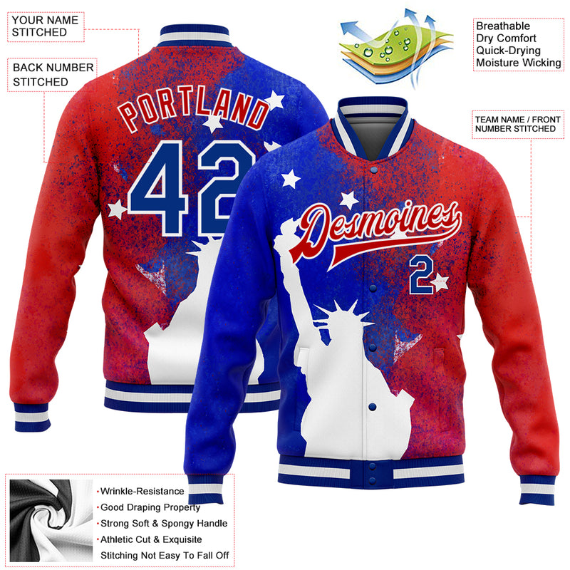 Custom Red Royal-White Statue of Liberty 3D Pattern Design Bomber Full-Snap Varsity Letterman Jacket
